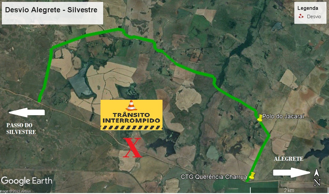 A Prefeitura de Alegrete, por meio da Secretaria de Agricultura, Pecuária e Desenvolvimento Rural, comunica que, nesta segunda-feira (11/03), a estrada rural Ale 010 – estrada passo do silvestre, na altura do Jacaraí, próximo ao CTG Estância Charrua – estará em obras para substituição de galeria antiga, que havia rompido devido às enxurradas ainda em outubro de 2023.